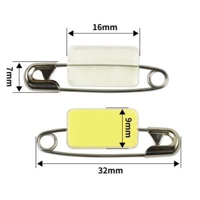 貼り付けタイプの安全ピンです。台座には強力な両面テープがついており、接着剤不要で取り付けることができます。