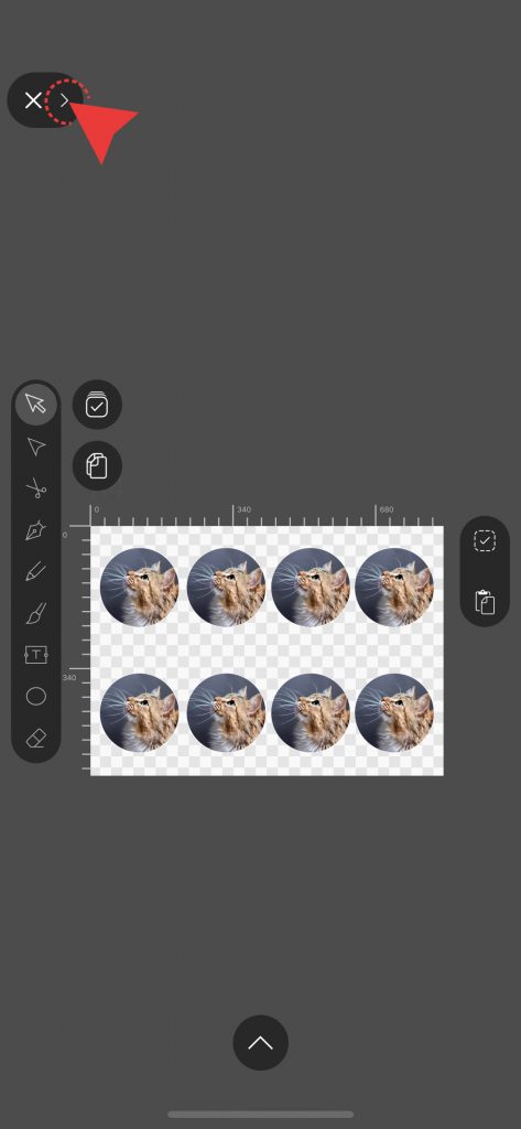 カンバス上にきれいに並べることができたら、左上の矢印をタップし、上部メニューを展開します。
