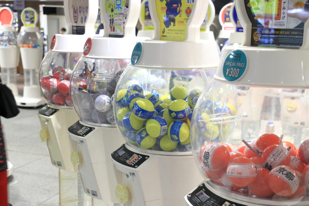 小型玩具や雑貨、缶バッジ、ミニフィギュアなどが主に取り扱われており、商品ラインナップの豊富さや手軽さから、子どもから大人まで幅広い層に支持されています。