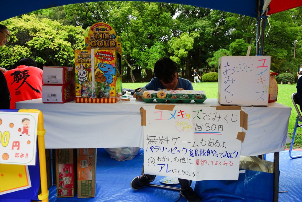 物販会社といえば一般的に、何かを売って活動することが多いのですが、あぶらびが開いている物販ブースには販売している品物がほとんどなく、大部分が子ども向けのゲームやくじなどで占められていることが特徴的です。
