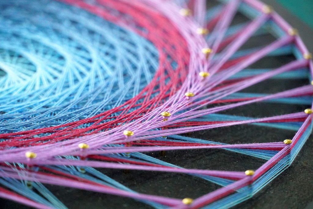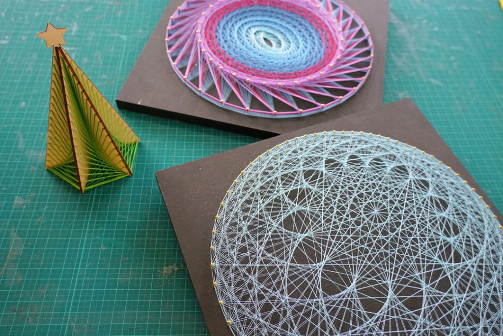 今は、大人を対象に「糸かけ」というアート作品のようなものを作っています。これはあらかじめ計算して、板に規則的に釘を打ち、順番に糸をかけていくと立体物ができるというものです。平面から三次元に発展するこの過程を「視点」と捉えて、大人に楽しんでもらいます。
