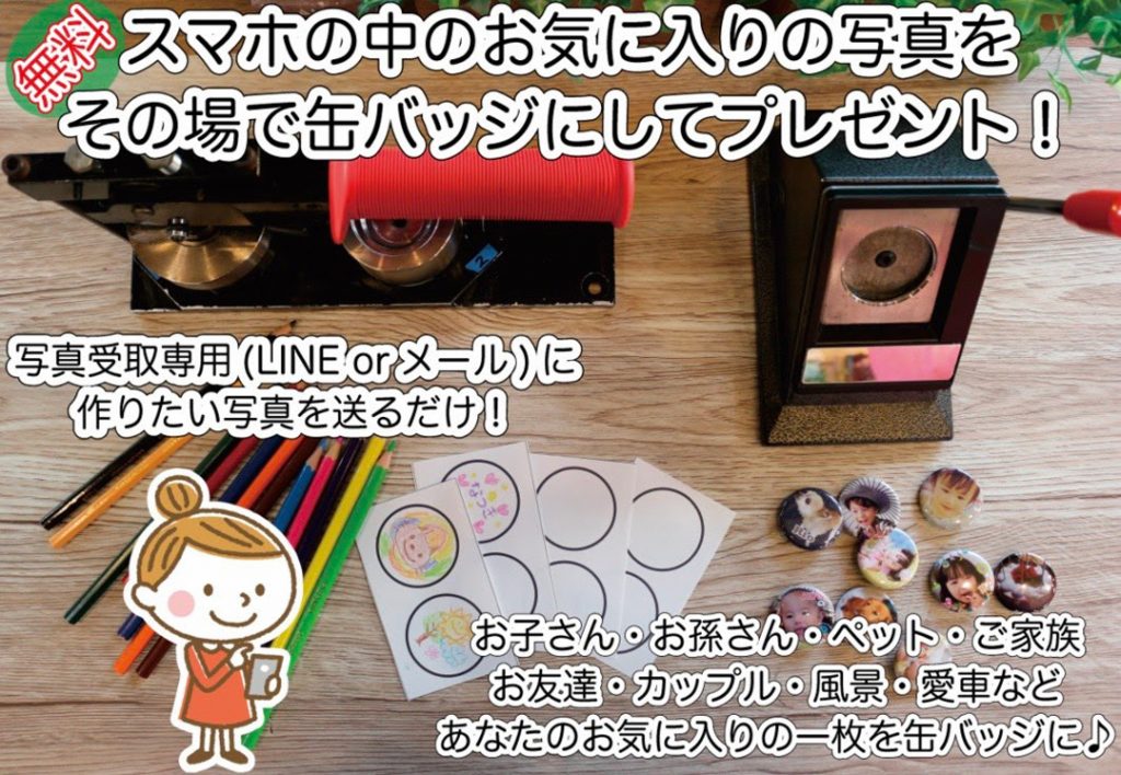 親子を対象にしたワークショップで、その場で描いてもらった塗り絵などを缶バッジにしています。最近では、LINEを導入した取り組みも始めまして、その場でLINEにお気に入りの写真を送っていただき缶バッジにするというものです。