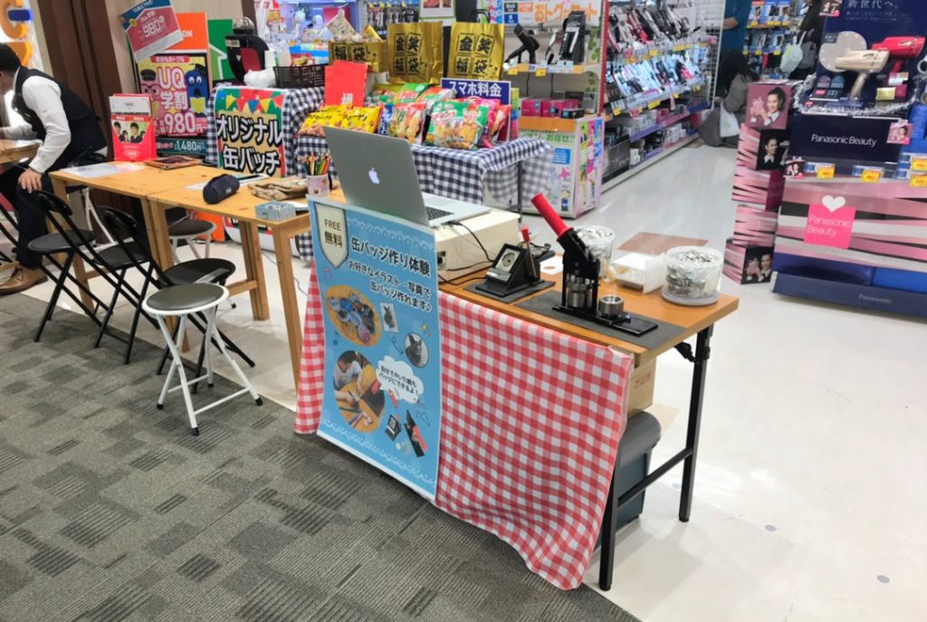 ワークショップとなるとついつい参加者の方ばかりに目がいってしまいますが、依頼先の店員さんの反応もすごく良いんです。店員さんも試しに缶バッジを作ってもらうことがあるのですが、一度経験された店員さんはこちらの味方になってくれて、それ以降も「ぜひやりましょう!」と乗り気になってくれて(笑)