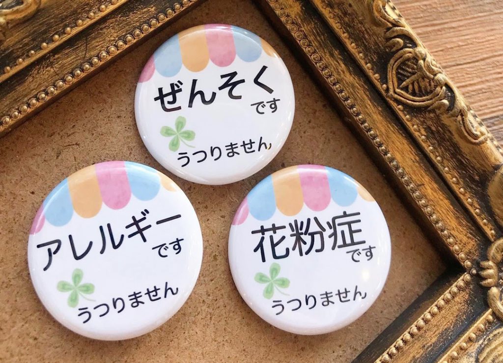 特に春先は花粉症の影響で、咳やクシャミは出てしまいますよね。でも、こういったご時世で咳やクシャミは体調不良なのか花粉症なのか分からず肩身の狭い思いをする方が多いと思います。そこで、「花粉症ですよ」とビジュアルで伝えるツールとして缶バッジを考案したんです。