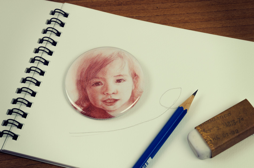 どうでしょう?今にも動き出しそうな可愛いお子さんの似顔絵バッジです。