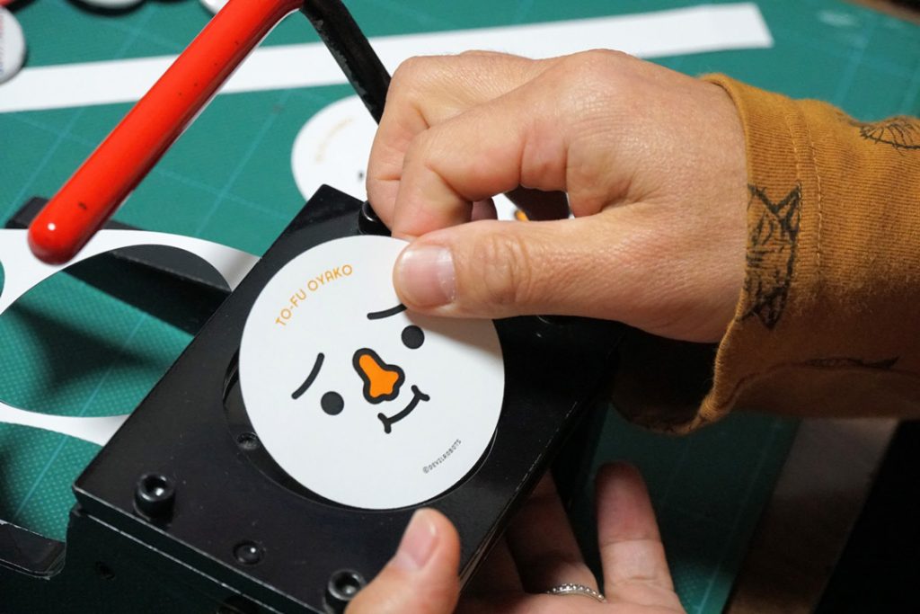 「そこで考えついたのが台紙の活用です。デザイナー視点で考えれば、やはり缶バッジは情報量が多すぎるとシンプルではなくなってしまって『かわいさ』が失われてしまうんです。なので、本当に必要な情報のみを缶バッジに入れて、足りない情報は台紙で補完するというアイデアを考えました」
