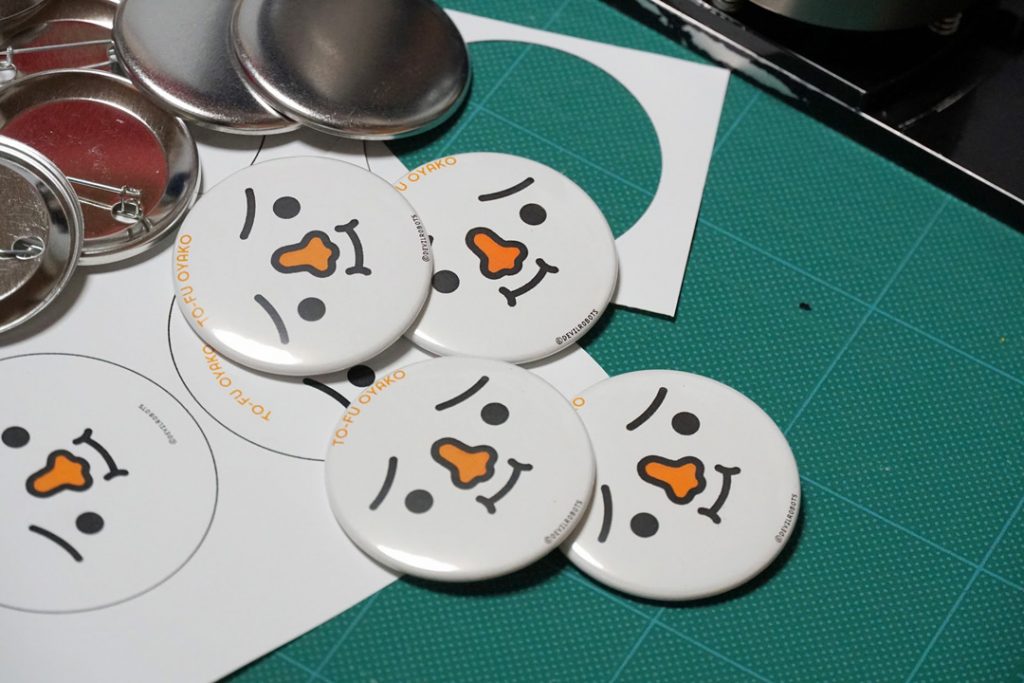 「私は『リボンちゃん』というキャラクターを新しく作って、キタイさんのトーフくんとコラボさせて頂いているのですが、イベントに出展する際に缶バッジがコミュニケーションの橋渡しをしてくれるんです」