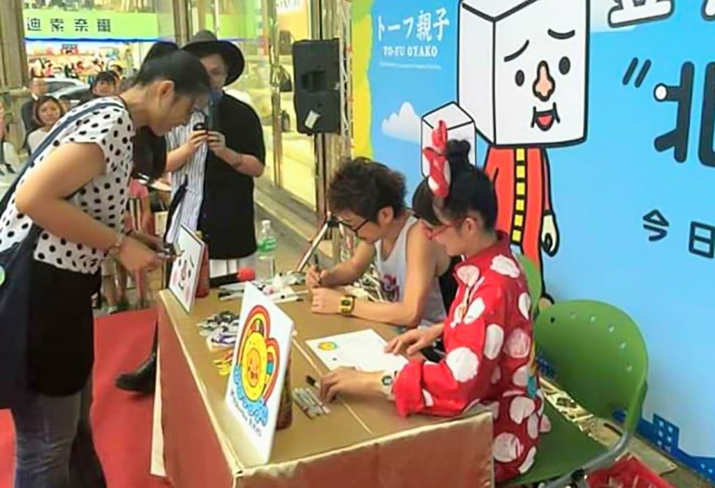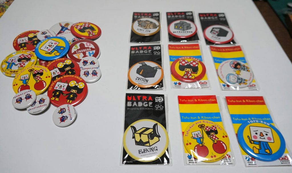 トーフ親子は最近では「うまい棒」を始めとした様々な商品とコラボ企画を行っており、10年以上前からその活動範囲をアジア各国にまで広げています。その際、キタイさんはプロモーションツールとして缶バッジを活用しているのだそうです。