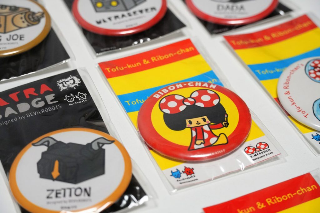 「あるアートイベントで、トーフ親子のプロモーションをしていたキタイさんと出会って、この世界に飛び込みました。そこから私も缶バッジを使って、自分のキャラクターであるリボンちゃんの宣伝をやるようになったんです」