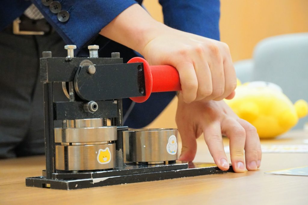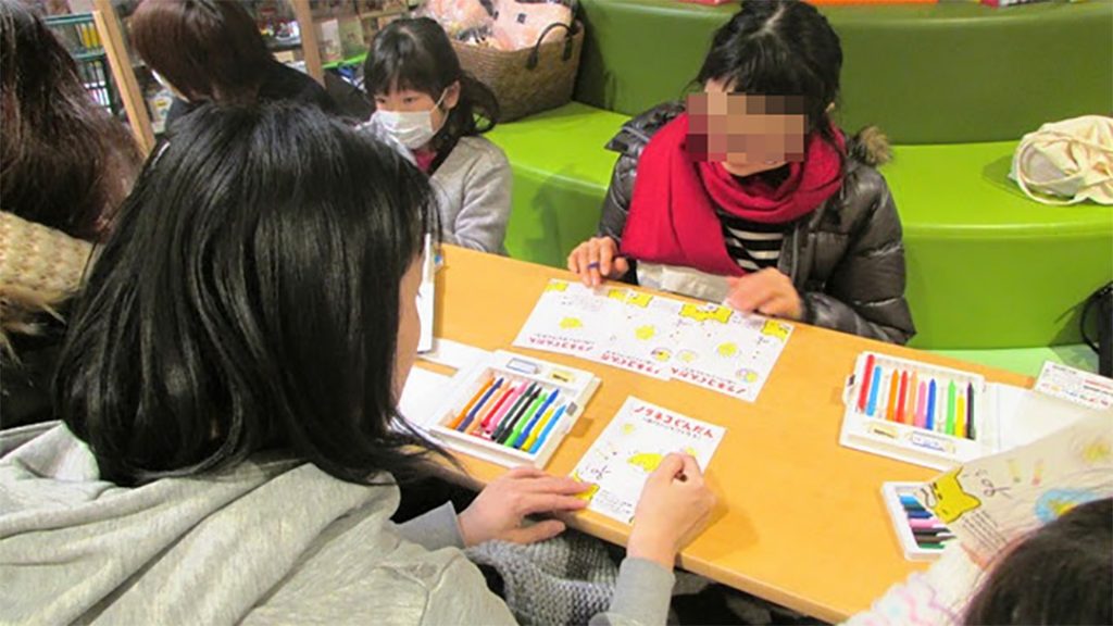 そうした追い風の中で、イベントツールとして導入されたのが缶バッジでした。専用のぬりえ台紙に描かれたノラネコのイラストに色を塗って、オリジナル缶バッジを作れるというワークショップイベントです。自分だけの缶バッジが作れるということで、参加者の満足度も高く、また、多い時には100人以上の参加者を集めることができるため、書店にとっても集客につながるそうです。今では、白泉社の絵本の一番人気のワークショップになっています。