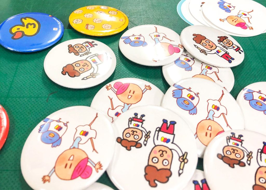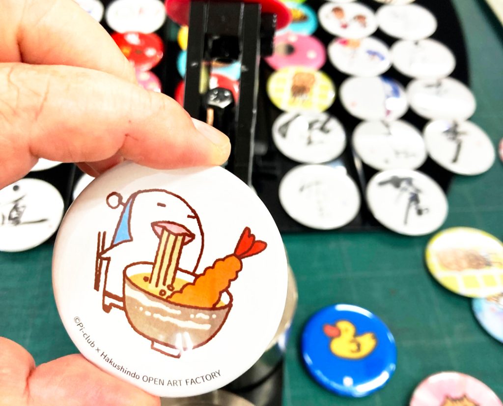 「Open Art FACTORY」にご来場された方への記念品として、「ぴぃくらぶカレンダー」のキャラクターを進呈し、デザイナーやイラストレーターの社員作品や書などの缶バッジを販売しました。