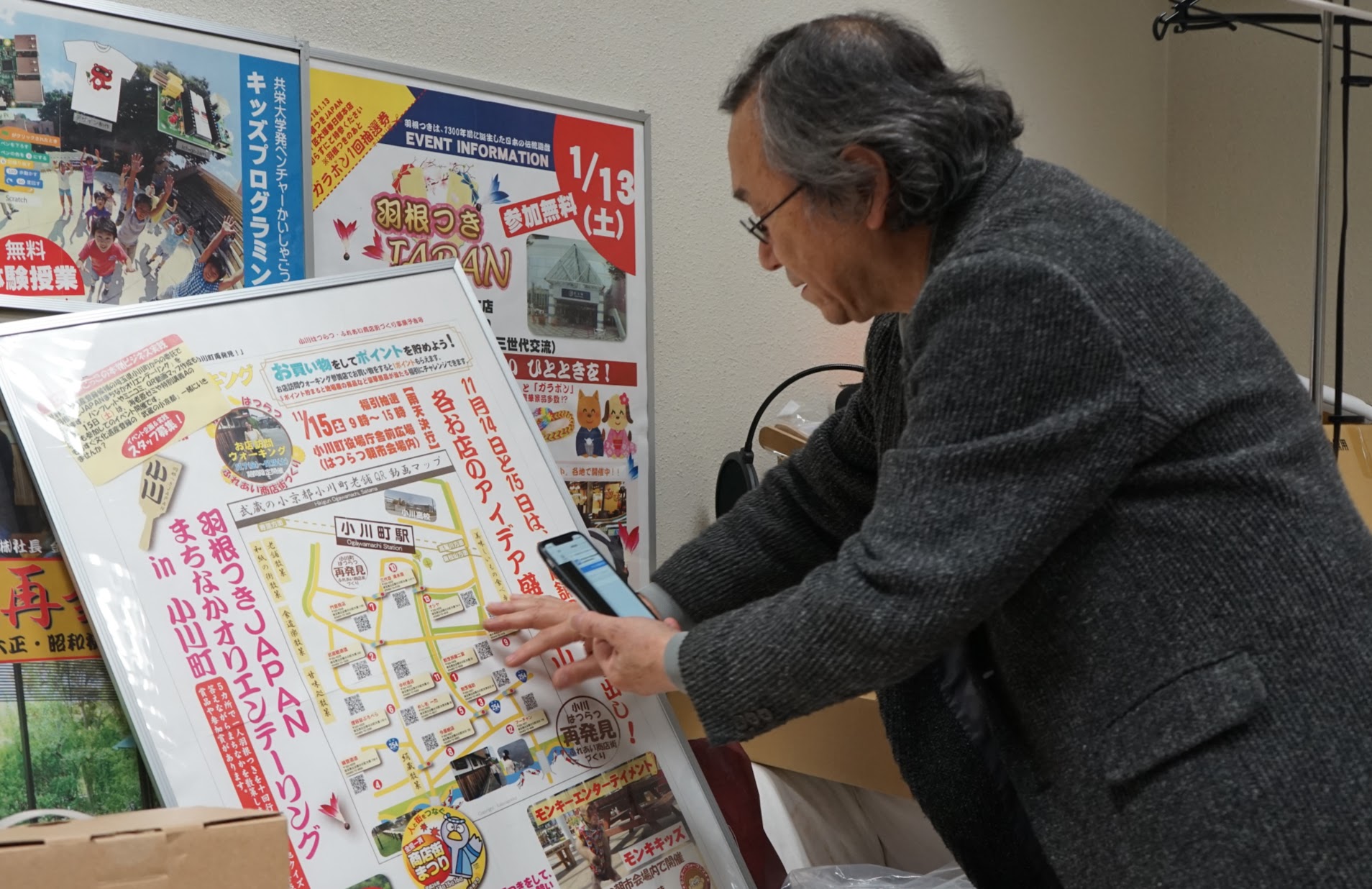 「イベントを開いて、QRコードが印刷された缶バッジを配ると、スタンプラリーみたいな感覚で、それぞれのお店にお客さんが足を運んでくれるので、それが町おこしになるんですよ。テレビCMやチラシなど受動的に受け取る情報には誰も気にも止めませんが、自らQRコードをスキャンして能動的に手に入れた情報は気になるものです」