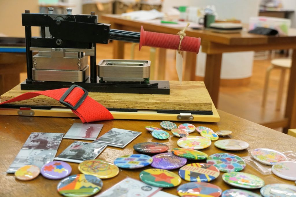 「それに加えて、当館には『美術大学』という大人向けのコースがあり、週に2日間の日程で1年間を通して実技と講義を開催しています。コースを卒業すると、美術館ボランティアとして当館で活動する方もいらっしゃいます。ボランティアの方には缶バッジを始めとしたワークショップの企画・運営を一緒にやっていただいています」