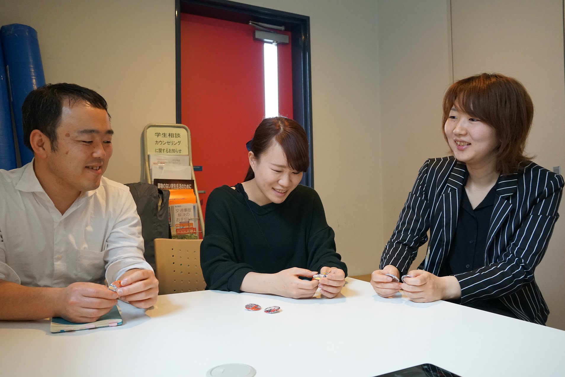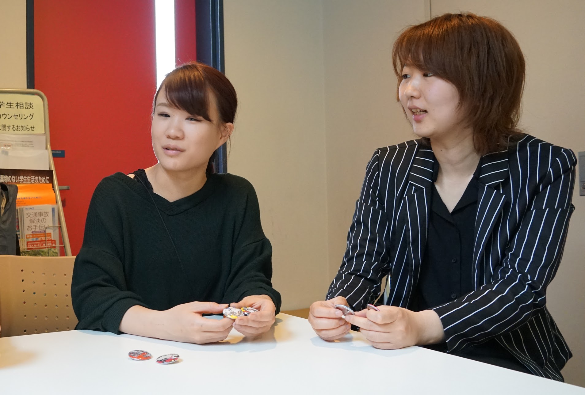 「『どこから来たんですか?』とか『好きなマンガはなんですか?』と会話をして、お客さんとの会話に合わせて缶バッジのデザインを変えたりします。そうやって仲良くなると、学生たちや大学のことを自然に理解してくれるようになります」