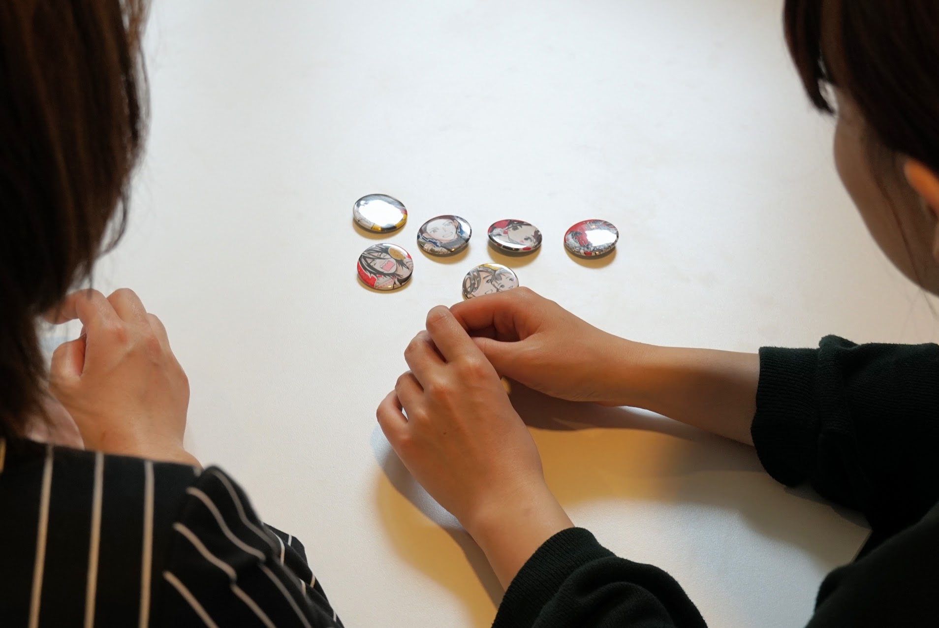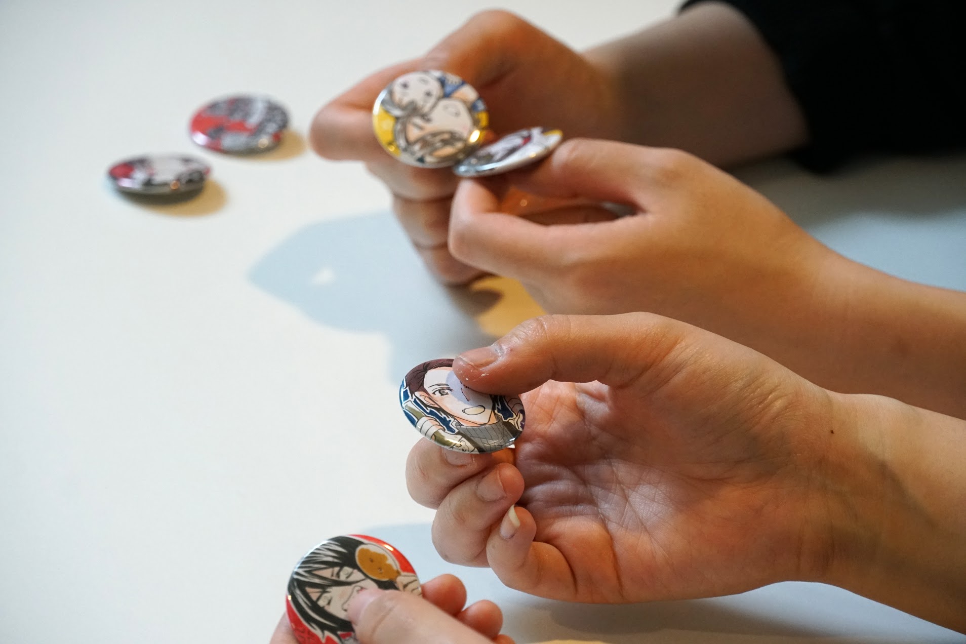 「それに缶バッジはイベントと相性が良いんです。例えば、色紙に似顔絵を描くという案もあったんですけど、色紙は大きいから受け取ったらカバンにしまってしまいますよね。でも、缶バッジなら服とかカバンにつけるので『それ何?』って話題になって友達を連れてきたりしてくれるんです」