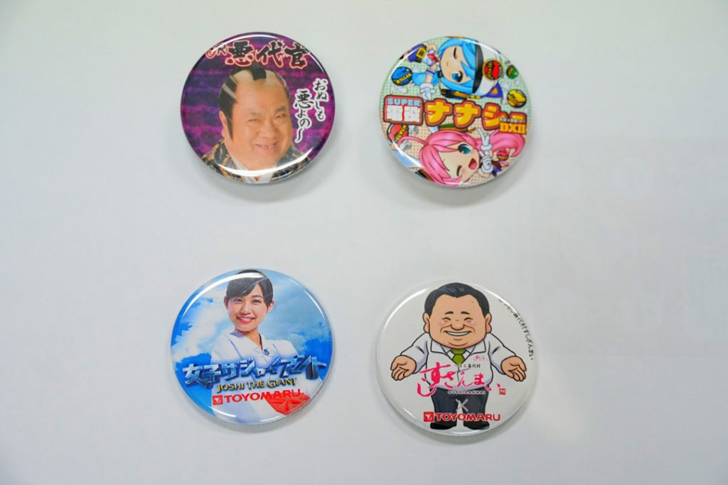 パチンコ業界各社が様々な取り組みを行う中、愛知県名古屋市に拠点を構えるパチンコメーカー、 豊丸産業株式会社 では缶バッジを活用したPR活動を行っています。