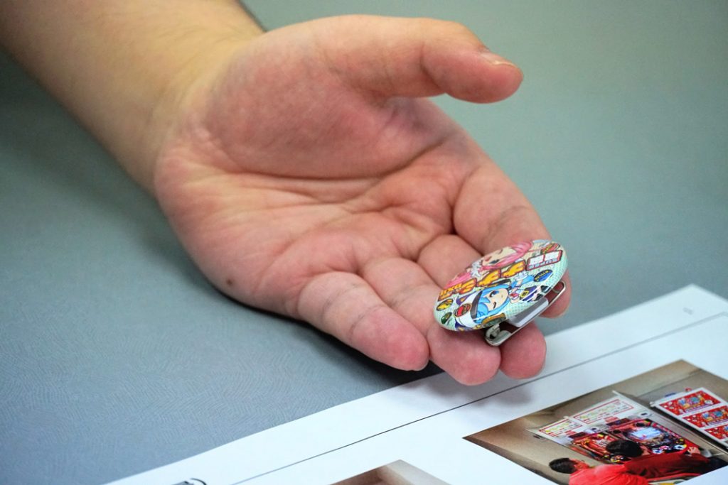 「試し打ちに来られるお客様は熱心なパチンコファンの方が多いので、新台のデザインを施した缶バッジは好評なんです。最近では他社のメーカーさんも缶バッジマシーンを導入し、共同で缶バッジスタンプラリーなどのイベントを開くこともあります」