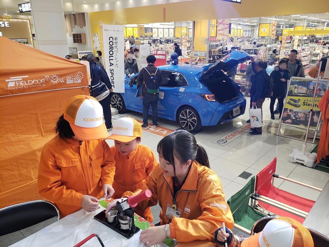 買い物をするついでに、車も買うことができる。そんな環境を提供するためにトヨタカローラ埼玉が行なっているのが、ショッピングモールのイベントスペースで開催している移動展示会です。
