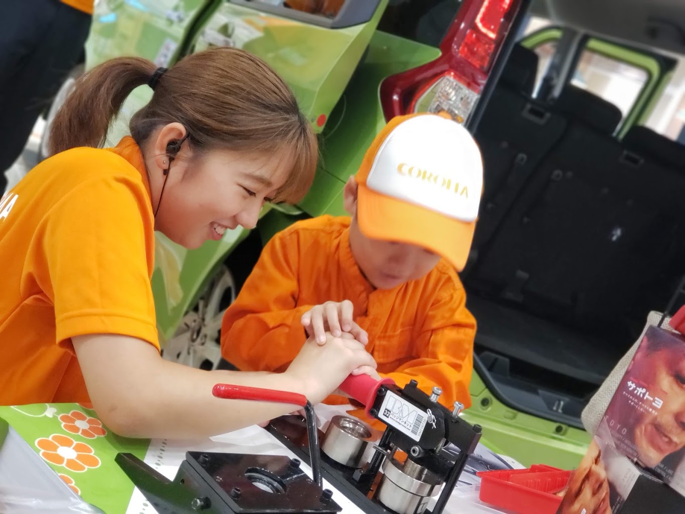 今では毎週のように車が売れているそうで、そこで欠かせないイベントとなっているのが、オリジナル缶バッジ体験です。