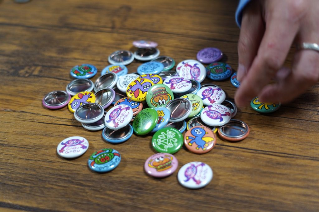 地域の人々の日常に存在する、キャラクター缶バッジ
