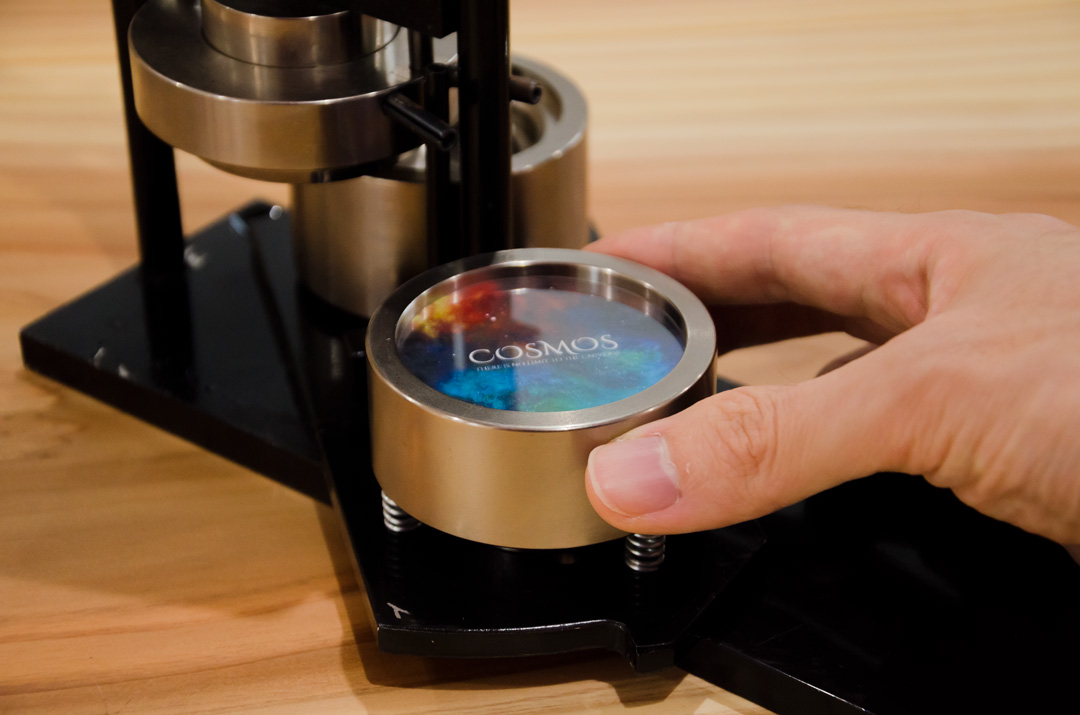 次に、マシンにパーツをセットします。最初はピックアップダイ(浅い方の金型)にシェルを乗せてください。