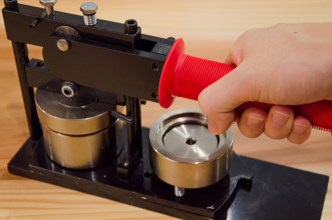 そのままハンドルを下ろしてプレスを行い、最後まで下ろし切ったらハンドルをもう一度最初の位置まで持ち上げます。