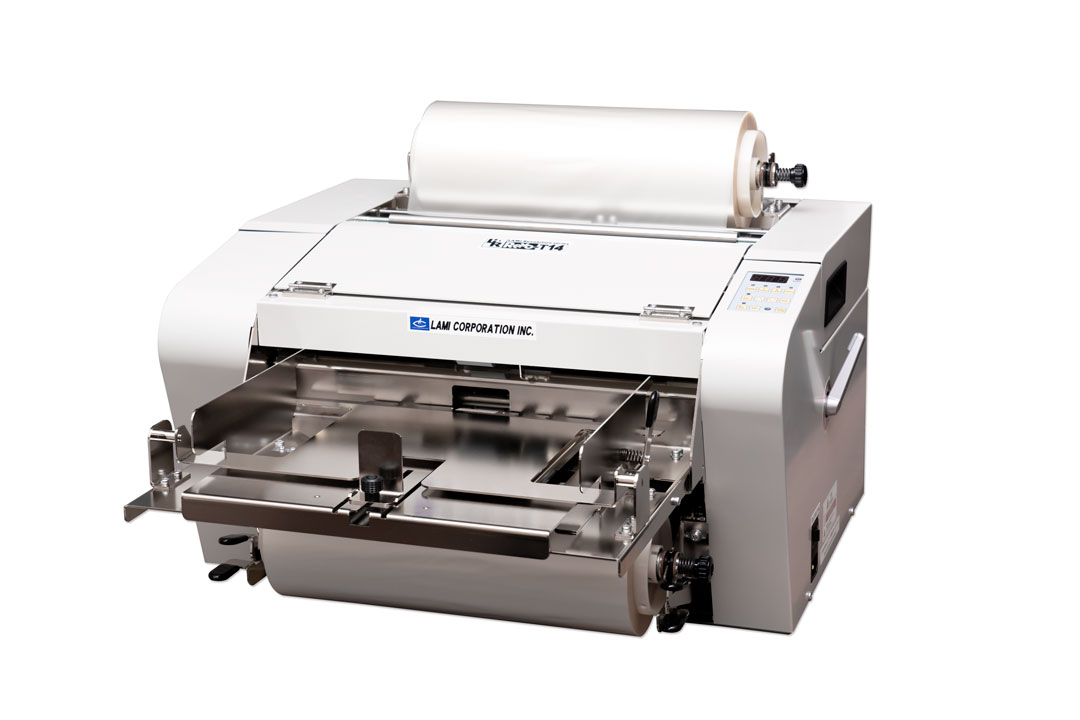 セットしてスタートボタンを押すだけで全自動でラミネート加工を行なってくれるため、スタッフはその間に別の業務に集中できるというわけです。