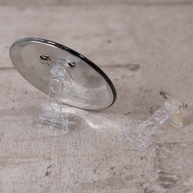 今回のクリアスタンドパーツ [L] は、76mm以上の大きい缶バッジにオススメしたい商品です。