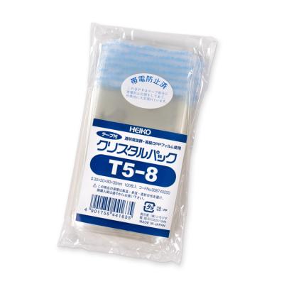 幅50mmx高80mm+テープ部分30mm 上部にテープが付いたタイプのクリスタルパック(OPP袋)で、ワンタッチで封ができます。